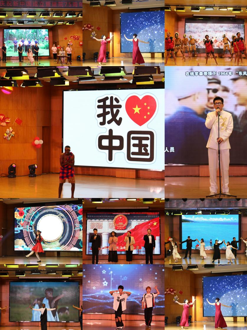 庆祝节目在《我和我的祖国》大合唱的激昂旋律中正式开始。《映山红》《Soul of Africa: Waka Waka》等青春洋溢的优美舞蹈,展现了年轻一代的朝气蓬勃。《我们的时光》《万疆》等曲目感情真挚,唱出了爱党爱国的新时代主旋律。国际学生带来的诗朗诵《My Story in China》,每一个字句都蕴含对中国的热爱和感激之情。服装秀《Diversity through Fabric》更是展示了丰富的文化多样性。演出在歌曲《我爱你中国》的动人旋律中落下帷幕,悠扬的歌声中回响着对党的敬意,心中激荡着炽热的爱国之情。