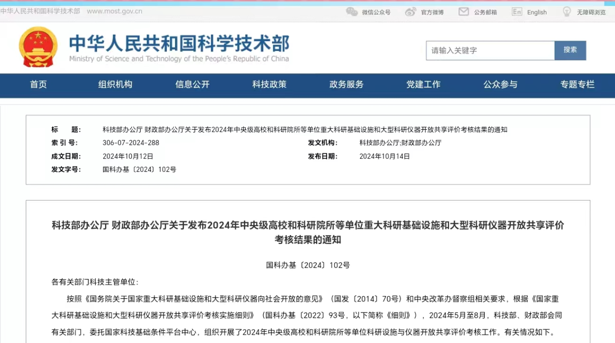 近日,科技部、财政部联合发布了《2024年中央级高校和科研院所等单位重大科研基础设施和大型科研仪器开放共享评价考核结果的通知》(国科办基〔2024〕102号),武汉植物园获评“良好”,并获得后补助奖励经费。在全国344家参评单位中,武汉植物园位列总排名第95位,是自2018年科技部组织评价考核工作以来取得的最好成绩,充分展现出武汉植物园在推动大型科研仪器开放共享方面取得了良好成效。