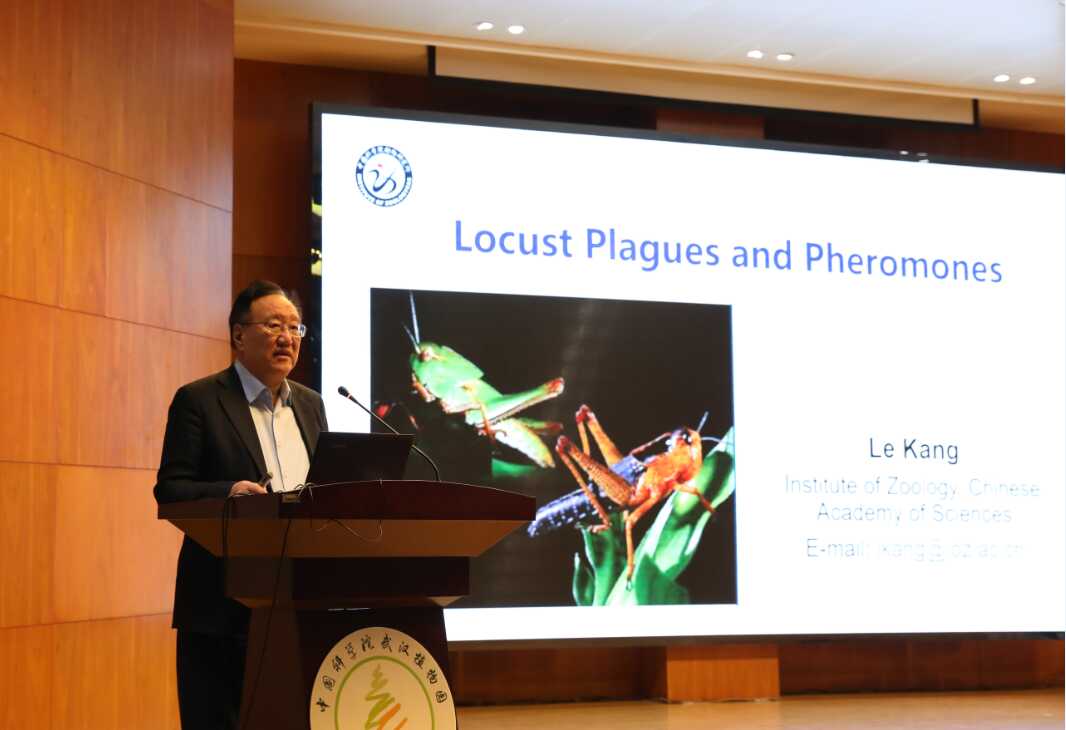 康乐院士以“蝗灾和蝗虫信息素”为题,介绍了蝗灾历史和发生机制,从化学分析、行为验证、嗅觉受体鉴定、基因敲除和野外验证等多个层面对飞蝗群居信息素进行了全面而充分的鉴定和验证,证明了两种化合物PAN和4VA通过调节蝗虫警戒、毒物和群聚信息素,共同介导蝗灾的爆发。这一发现不仅颠覆了对蝗虫聚群机制的传统认知,更为全球蝗灾的可持续防控提供了新的思路和方法。