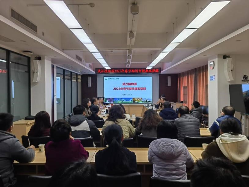 1月22日,中国科学院武汉植物园开展2025年春节期间集体廉政提醒。党委书记、副主任尚纳新应邀参加会议,纪委书记贺锋主持会议并进行节前集体廉政提醒,中层领导人员、管理部门工作人员参加会议。
