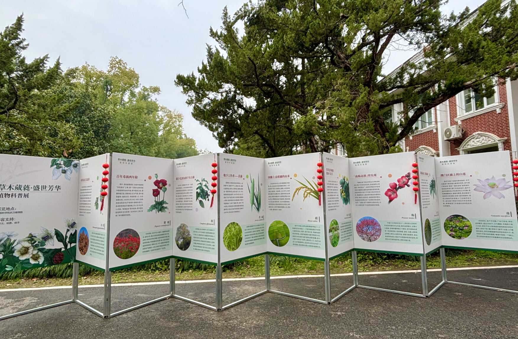 作为武汉植物园科学家精神教育基地的专题展览,“草木葳蕤 盛世芳华”植物科普展在武汉植物园磨山园区科学家精神教育基地大门口亮相。展览采用图文展览的形式,精选35种植物为历史坐标,通过珍贵档案、博物插画、科普知识与红色叙事相融合的图文展陈,打造了一部“可阅读的植物史书”。一个红薯,承载着“三大纪律八项注意”的初心;一棵千年古樟,铭记着毛泽东在瑞金叶坪的惊险脱险;一丛灯芯草,映照出领袖在油灯下书写革命真理的剪影。从井冈山的毛竹扁担到上甘岭的苹果,从象征地下工作者智慧的吊兰到见证中美友谊的红杉,每一株植物都是历史的“活档案”,讲述着信仰的力量与时代的变迁。展览以“植物+历史事件”的叙事逻辑,串联起从秋收起义到改革开放的壮阔篇章。