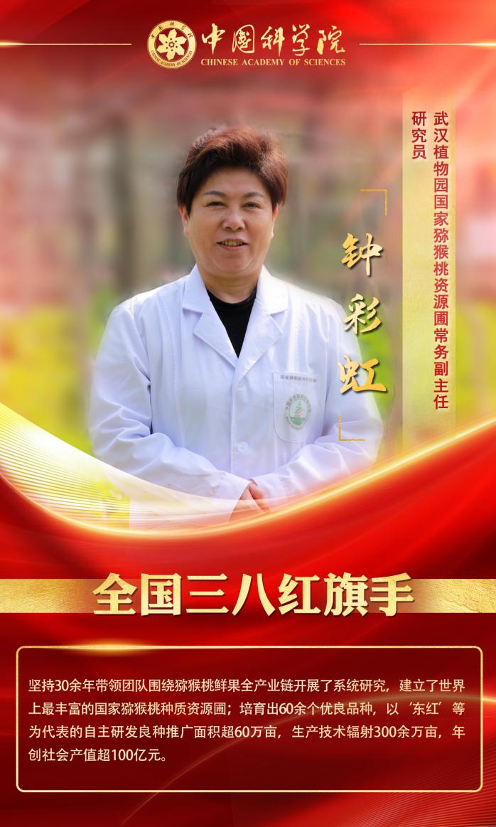 近日,全国妇联、中央和国家机关妇工委分别公布全国三八红旗手、全国三八红旗集体、全国巾帼文明岗及中央和国家机关三八红旗手、中央和国家机关三八红旗集体名单。武汉植物园钟彩虹研究员荣获全国三八红旗手称号。