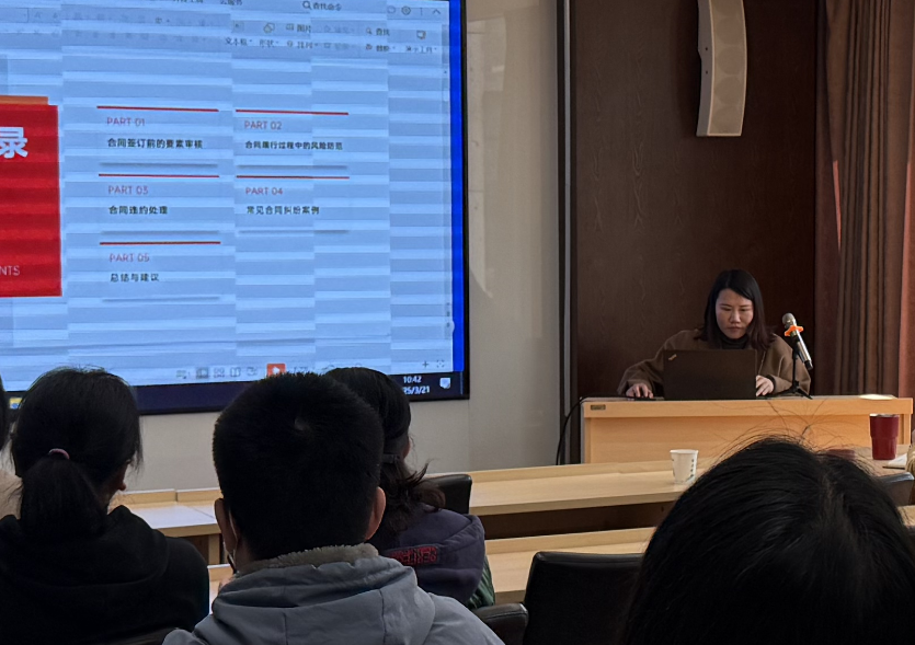 湖北今天律师事务所刘明月律师作了《合同法律风险防范与纠纷处理》专题报告。刘明月介绍了合同全流程管理的要点,从合同审核、合同执行中风险防控、合同违约处理等方面进行了详细讲解,针对常见合同纠纷案例与参会人员做了分析与提醒。