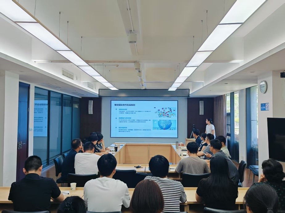 机关第二党支部党员代表邵旭介绍国际合作与教育处相关工作与政策