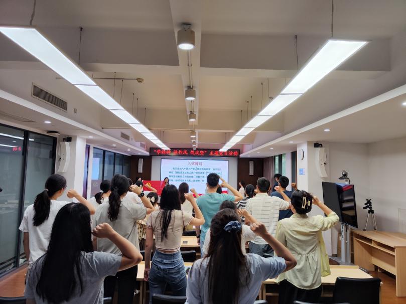 活动伊始,第二党支部张玲玲同志带领全体与会党员面向党旗庄严宣誓,重温入党誓词,进一步强化初心使命,筑牢理想信念根基。随后,党委委员陈良同志以《自我革命强根基,党建引领攀高峰》为题讲授党课,强调要深入学习贯彻习近平总书记关于党的作风建设的重要思想,准确把握科技创新新形势新要求,以高质量党建推动“四个率先”目标实现,为抢占科技制高点提供坚强政治保证。