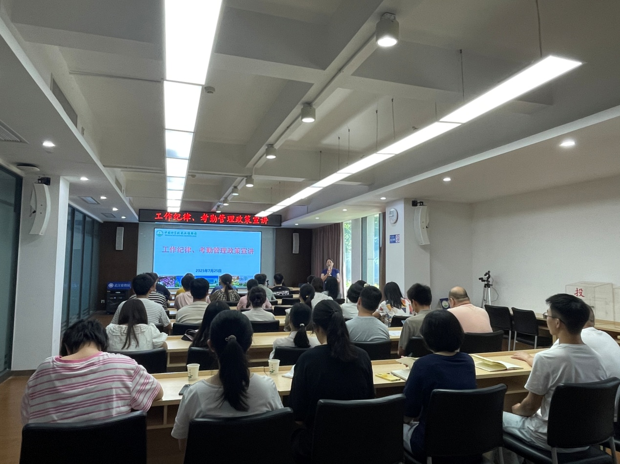 此次宣讲会旨在深化全园职工对岗位管理政策的理解,进一步规范请销假及考勤统计工作,促进全园职工将纪律意识转化为“守规矩、勇担当”的行动自觉,共同营造风清气正、聚力攻坚的创新生态。
