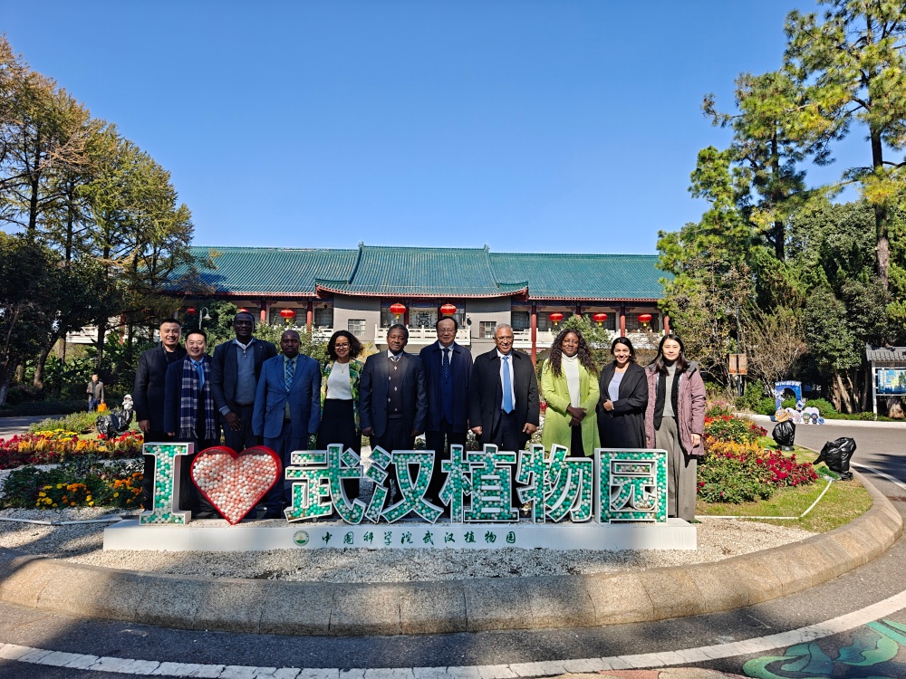 11月19日,“2025中非创新合作与发展论坛”在武汉召开期间,非盟教育、科技与创新委员加斯帕尔·巴尼扬金博纳教授与埃及科学研究部科技创新基金委(STDF)主席瓦拉·谢塔教授应中国科学院中-非联合研究中心(以下简称“中-非中心”)邀请,访问中国科学院武汉植物园,就深化中非科教领域务实合作展开深入交流。
