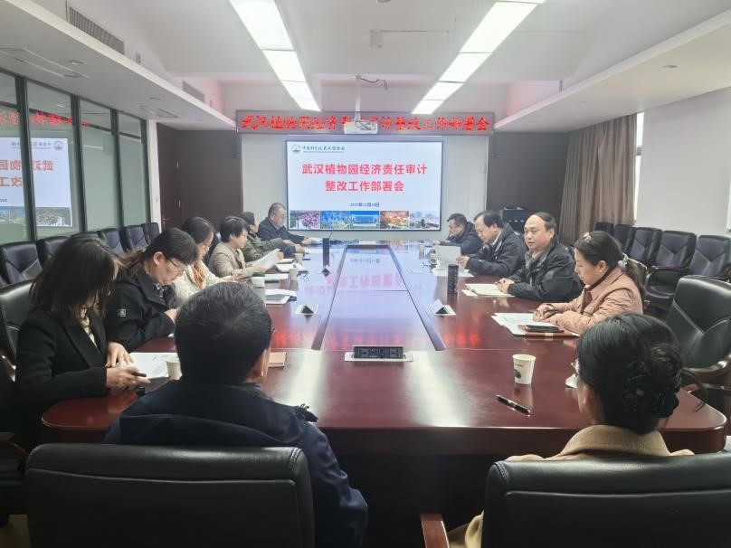 2025年12月18日,武汉植物园召开主要领导人员任期经济责任审计整改工作部署会,推进审计发现问题整改落实。会议由纪委书记贺锋主持,园主任王青锋出席,全体中层领导人员参加。