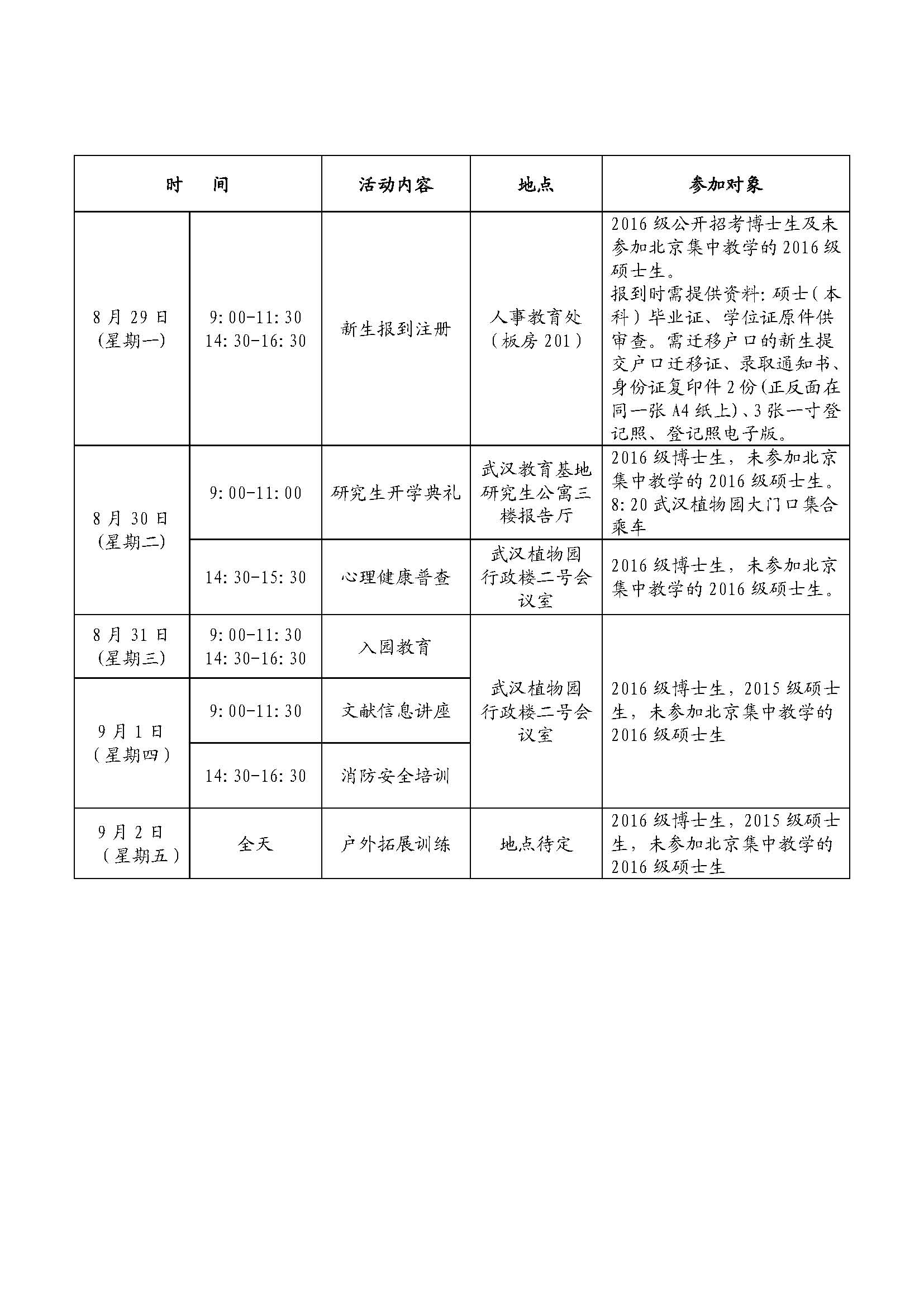 中国科学院武汉植物园2016年研究生入学(园)教育活动周安排(8月29日-9月2日)