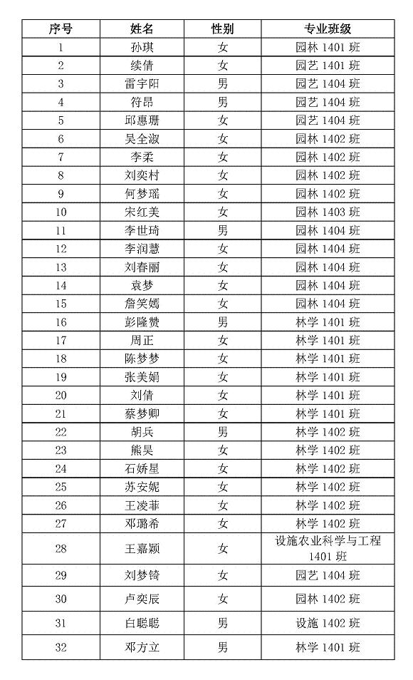 经学生自愿报名,材料审核及遴选,共32名同学入选第四届“园林植物与观赏园艺菁英班”,名单附后。