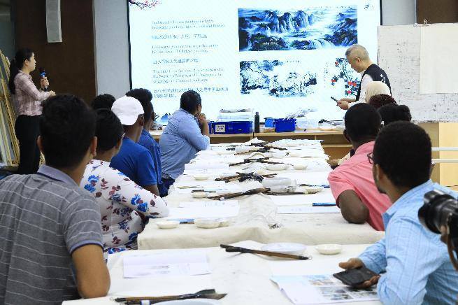 4月21日,武汉植物园举办了“学习中国传统文化”系列活动——一张中国画 让你爱上中国,邀请资深国画老师教授留学生国画技巧。活动由国际合作与教育处主办,来自肯尼亚、埃塞俄比亚、卢旺达、埃及、孟加拉国等国家的13名留学生参加活动。