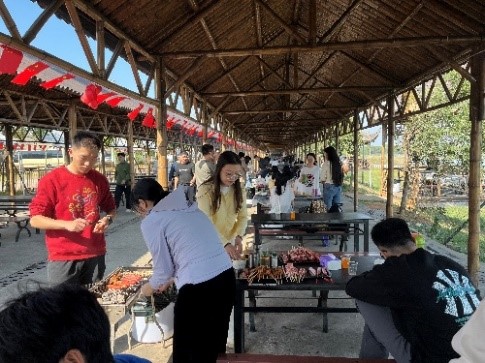 中午时分,同学们大展厨艺,团结合作,在湖畔边享受湖畔自助烧烤,为秋游活动增添了一抹别样的风味。在风景如画的梁子湖边,老师和学生们共同漫步,自由交流,畅谈学术,分享生活,美食与美景完美融合,让大家在享受美味佳肴的同时,也沉醉于大自然的无限风光之中。