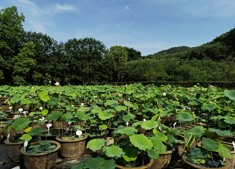 开发和利用方面,我园已培育213个荷花品种,包括象征中日友谊的‘中日友谊莲’、黄色重瓣大花的经典品种‘友谊牡丹莲’、推广面积达到100万亩以上的藕莲“武植二号”、花期可延至国庆节的秋荷系列品种。其中17个新品种完成了IWGS国际荷花新品种登录,6个新品种申请了农村农业部的新品种权保护。