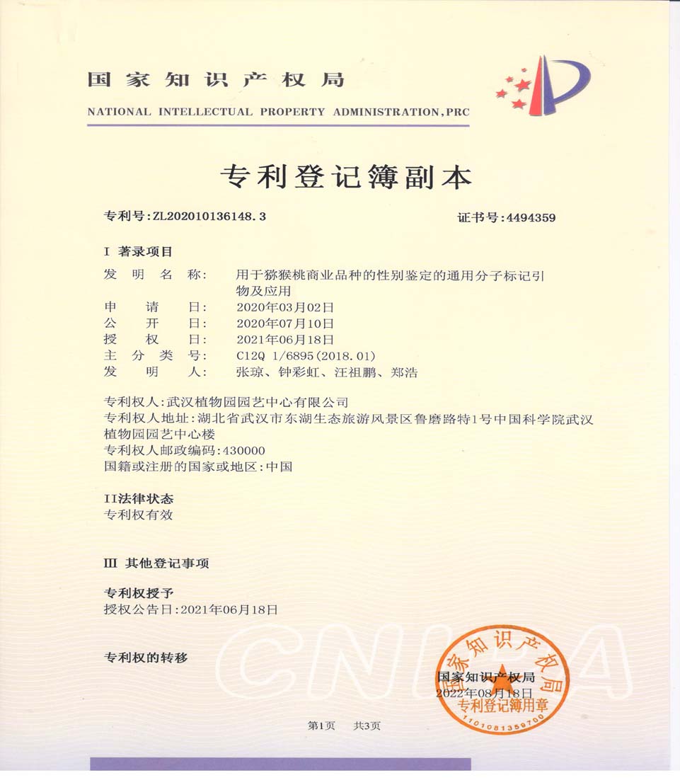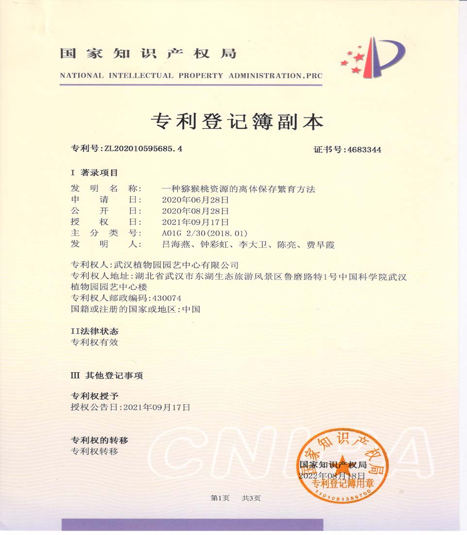 中国科学院武汉植物园专利品种猕猴桃