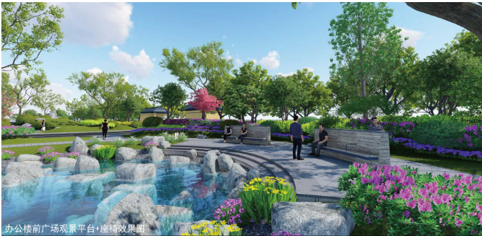 黄鹤楼卷烟包装印刷及辅材产业园项目一期工程景观绿化设计-办公楼前广场观景平台+座椅效果图