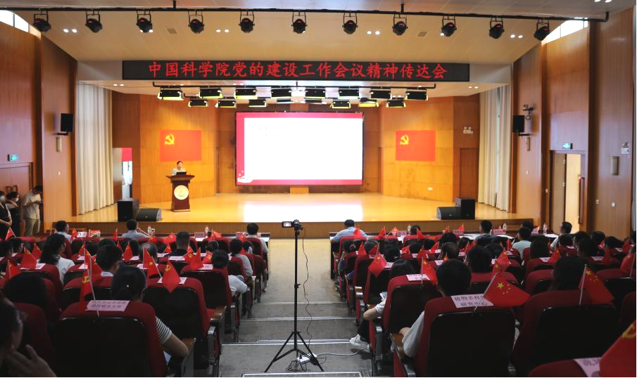 6月30日,武汉植物园召开全体党员大会,学习传达中国科学院党的建设工作会议精神,园主任王青锋主持会议。