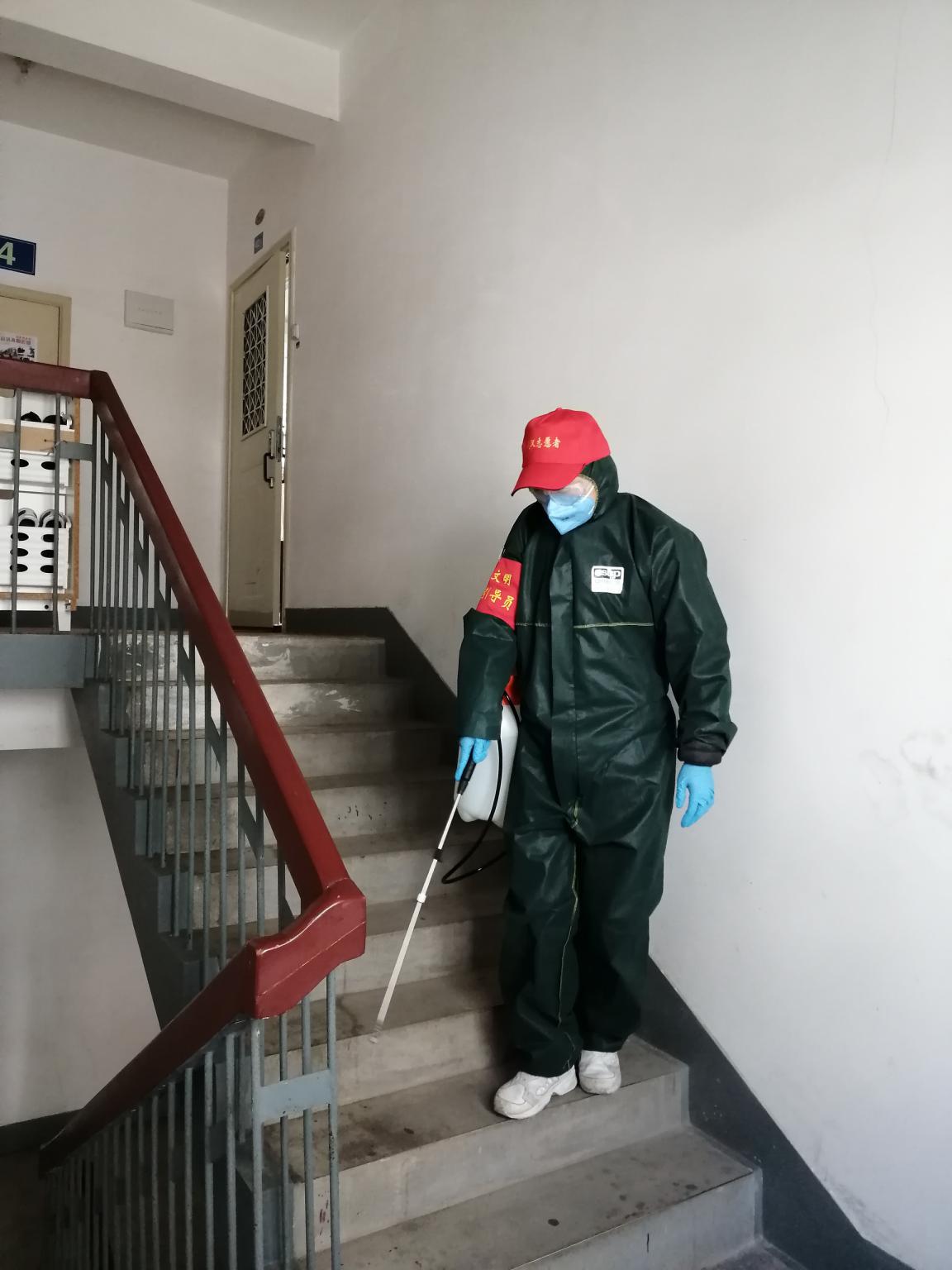 刘怀博在楼道消杀