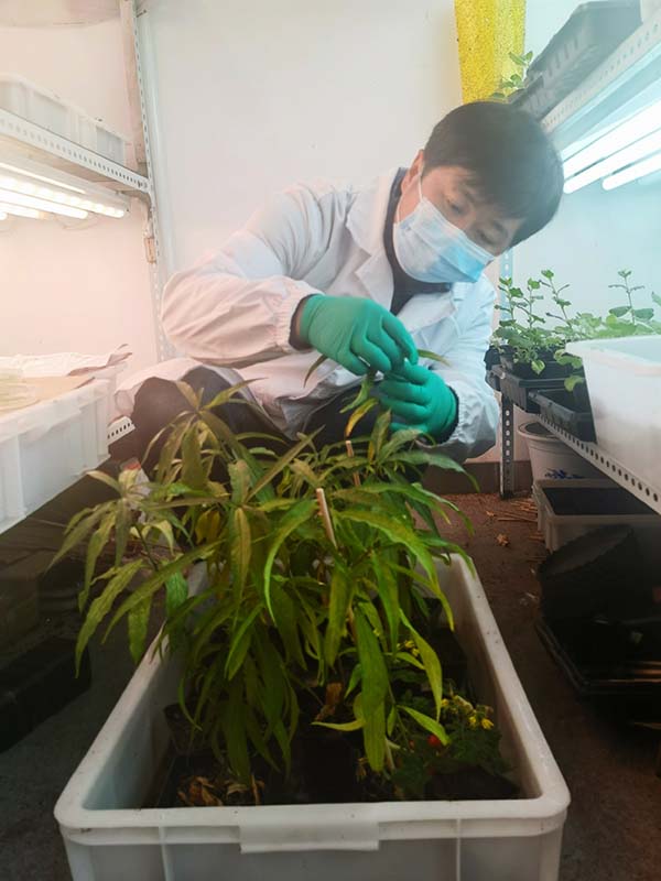 果实品质直接影响果品的商业价值,历来是果树工作者关注的重点领域之一。廖燎博士自进入植物园以来,以苹果、桃等果树为研究材料,围绕我国果树产业凸现的品质瓶颈问题,开展果树果实重要品质性状形成的遗传机理与分子调控研究。在果实风味品质方面,挖掘到控制果实糖、酸含量的核心基因,明确酸度的选择是苹果品质改良的关键,为果实风味品质改良提供了理论依据和分子工具;在色泽遗传方面,揭示了原花青素代谢途径结构基因过量表达会抑制花青素代谢途径结构基因,阻止花青苷的积累改变植物的着色方式,为果实着色和改善外观品质提供了新的研究策略;在果实营养品质方面,构建了资源群体的表型数据库,为新种质的选育提供优异的育种材料。