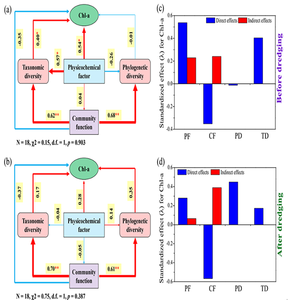 针对浮游细菌对疏浚响应的工作。研究发现:浮游细菌在疏浚后环境位宽变窄,系统发育信号变弱,因而环境适应性降低。疏浚导致浮游细菌生态漂变,群落构建的随机性过程增加,生物和非生物因素之间的关联强度降低。研究成果发表于Water Research上。