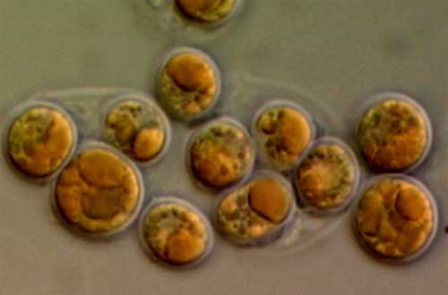 雨生红球藻(aematococcus pluvialis)孢子(cyst)是自然界含虾青素(Astaxanthin)最丰富的细胞,规模化养殖雨生红球藻是天然虾青素的主要来源。虾青素是一种天然类胡萝卜素,也是用于珍贵水产动物饵料添加剂的主要类胡萝卜素,具有改善食用鱼肉色和观赏鱼外观色泽的作用。虾青素具有超强的抗氧化活性,抗氧化能力是天然B-胡萝卜和维生素E的数倍,具有极强的去除自由基的能力,保护细胞和组织免受脂质氧化的损伤,显著提高人体免疫力,具有抗疲劳、抗衰老作用。目前,天然虾青素已经被开发成为人类的保健食品。大规模培养雨生红球藻生产天然虾青素是二十一世纪国际上新兴的微藻生物技术产业。近年来,国内也开始批量生产雨生红球藻孢子粉。