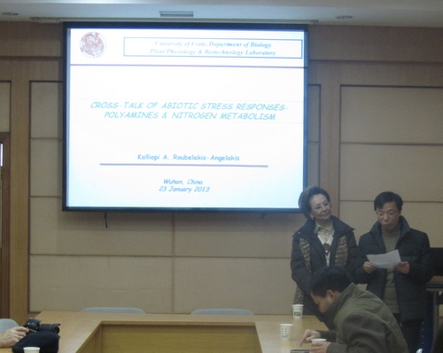 1月23日下午,应韩月彭研究员的邀请,希腊克里特大学Kalliopi A. Roubelakis-Angelakis教授到重点实验室作了题名为“Cross-talk of abiotic stress responses-polyamines & nitrogen metabolism”的学术讲座。