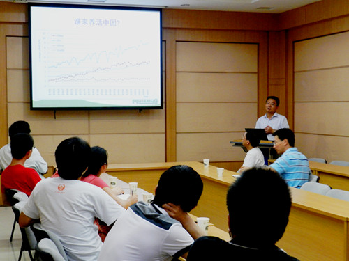严建兵作了题为“关联分析在作物遗传改良中的应用”的学术报告。首先简要介绍了前期收集的大量玉米种质资源及其存在的各种表型差异,详细展示了对多达500份玉米材料相关表型进行的关联分析。通过对4个重组自交系家族中500个自交系进行关联分析,发现20个QTL位点与维生素E含量密切相关,并克隆鉴定了主效QTL位点VTE4;同时利用RNA-seq方法挖掘了玉米籽粒103万个SNP,获得了28,769个基因的表达量数据,基于全基因组关联分析,共发现74个QTL位点与籽粒油份相关性状显著关联。