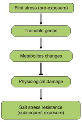 逆境驯化(stress acclimation)迫使植株体迅速做出信号感知、信号转导及转录调控以减轻胁迫对植株的伤害,一旦逆境胁迫消除后,大部分信号和基因转录水平会恢复到植物本底水平,而有一部分逆境信号和基因表达会被植物体记住,即获得逆境记忆(stress memory),这种逆境记忆部分会遗传给后代,当再次暴露于此前逆境环境,逆境记忆会迅速被激活,基因序列没有发生改变,但是基因表达水平发生了改变,从而增强驯化植株耐逆能力。