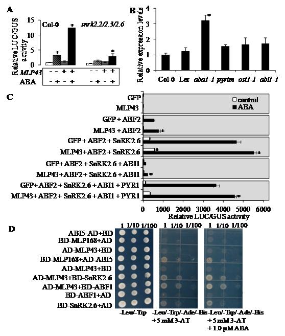 MLP43与SnRK2.6以及ABF1互作调控ABA信号通路