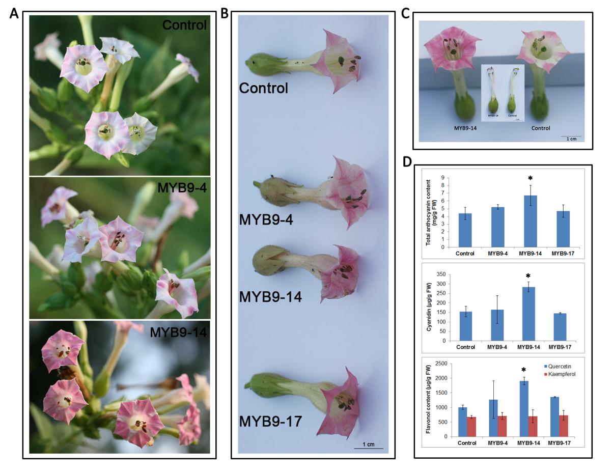 EsMYB9转录因子在烟草中超量表达对花色和类黄酮含量的影响