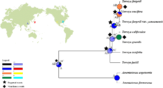 图2:榧树属祖先分布区重建