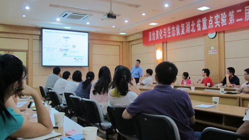 7月13日下午两点,武汉植物园二号会议室座无虚席,美国马里兰大学朱建华教授应邀作题为"Recent progress in molecular characterization of abiotic stress responses in plants"的学术报告。报告会由产祝龙研究员主持,广大师生参加了报告会。