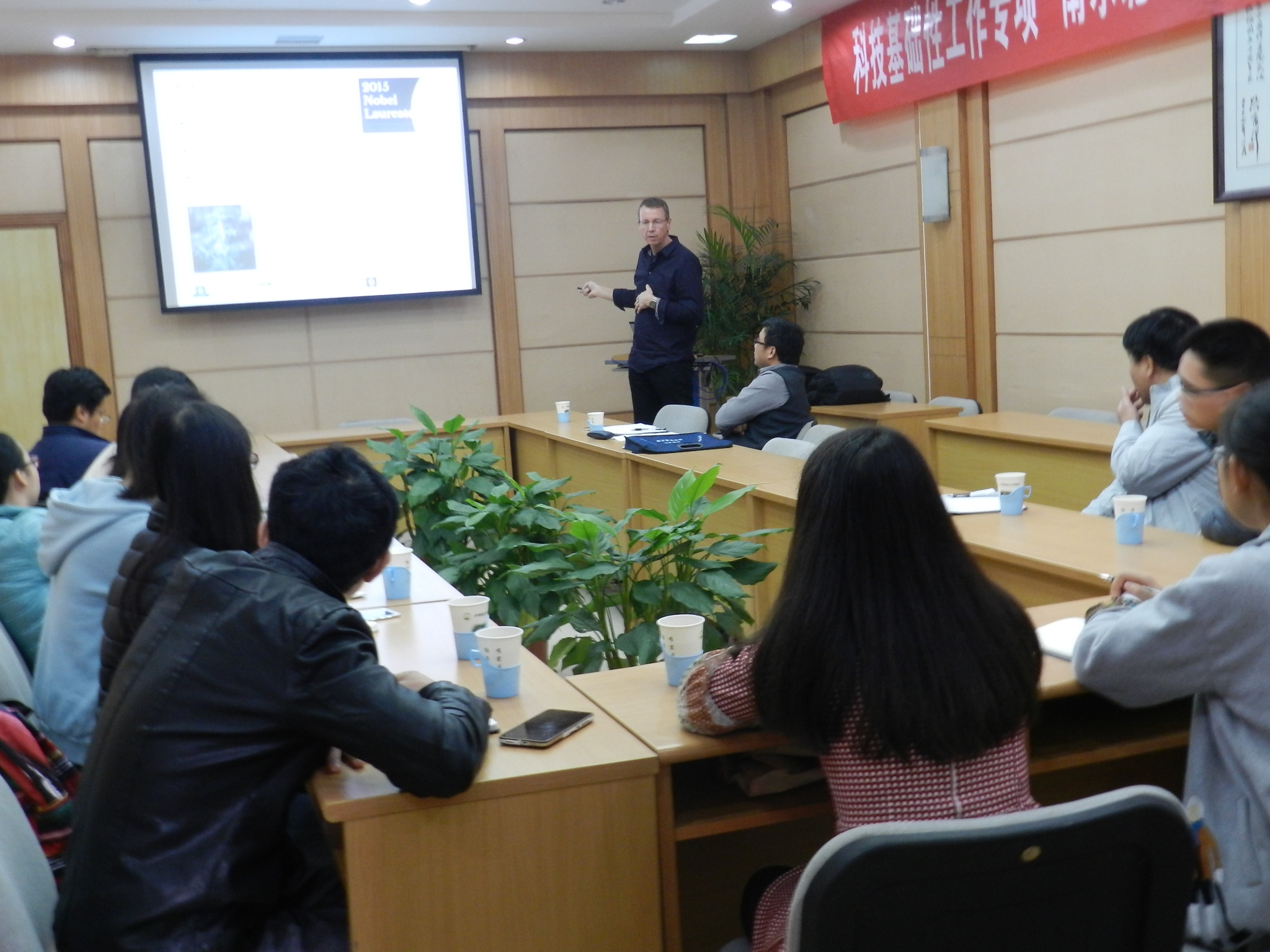 Bouwmeester 教授在报告中介绍了其团队在植物代谢工程以及植物次生代谢物介导的植物与其寄生病原菌之间的相互作用机理方面的研究进展,在植物代谢工程研究方面,Bouwmeester 教授团队将抗疟药青蒿素的整条合成路径转入模式植物烟草中,发现了一种特异的转运蛋白能够促使青蒿素在烟草中正确合成,该研究说明植物次生代谢物的合成涉及到了复杂的物流体系,从一个细胞到另一个细胞、从细胞内至细胞外都需要配备特异的转运体系,方能完成整个代谢物的合成与释放,从而使得植物次生代谢物发挥其应有的生物功能;在研究植物宿主与其寄生病菌相互作用研究方面,Bouwmeester教授发现植物次生代谢物发挥了极其关键的信号转导作用,比如他们发现了一种叫strigolactone的物质,植物在磷胁迫的情况下,就会释放这种植物次生代谢物,通过其根器官释放到土壤中,而土壤中的寄生病原菌一旦感受到这种物质的释放,就会立即召集到该植物的根部进行繁殖并释放营养物质供给宿主植物,在整个宿主植物与寄生病原菌之间的相互作用过程中,植物次生代谢物起到了一个信号向导作用。