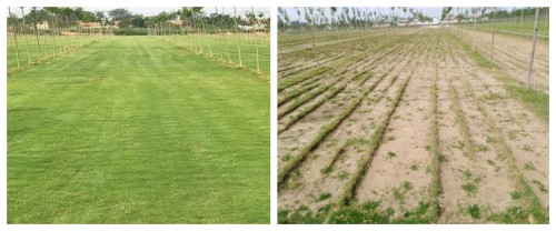 a耐盐草坪草繁育基地(起草前) b耐盐草坪草繁育基地(起草后)