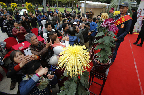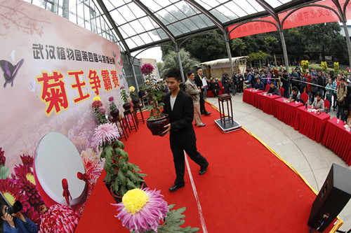 11月7日,武汉植物园第四届斗菊擂台赛决赛精彩上演,11盆菊花打擂上演了精彩对决。最终,燕赵公园景观工程有限公司北京分公司送选的“古刹金刚”拔得头筹,让23岁的养菊新手周广坤夺得了武汉市“菊花花王”的称号。