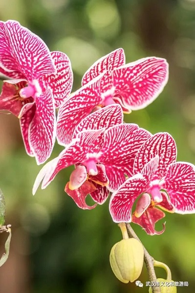 武汉植物园的兰花展设在玻璃温室内,主要在热带植物区与兰花展示区展出。共有100多个品种、上万株兰花,热烈绽放。